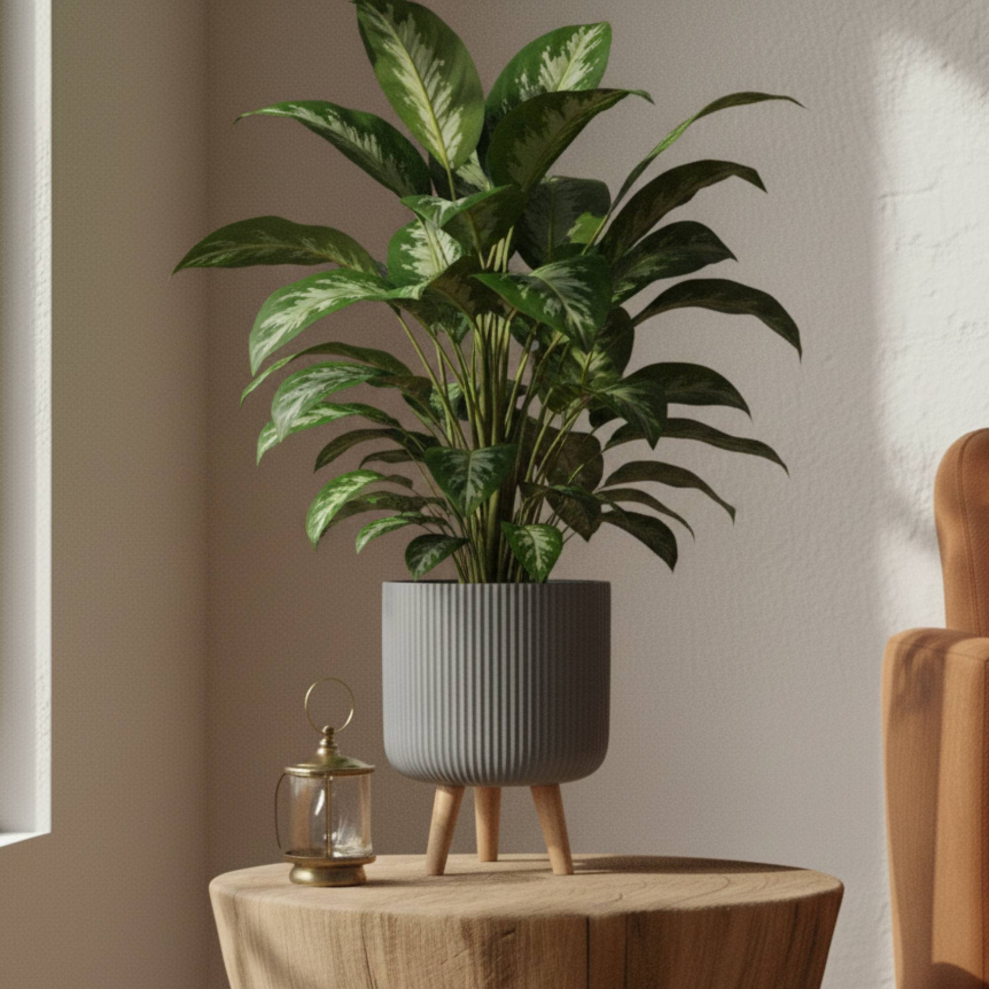 Small Idealist Ribbed Round Indoor Planter with Legs