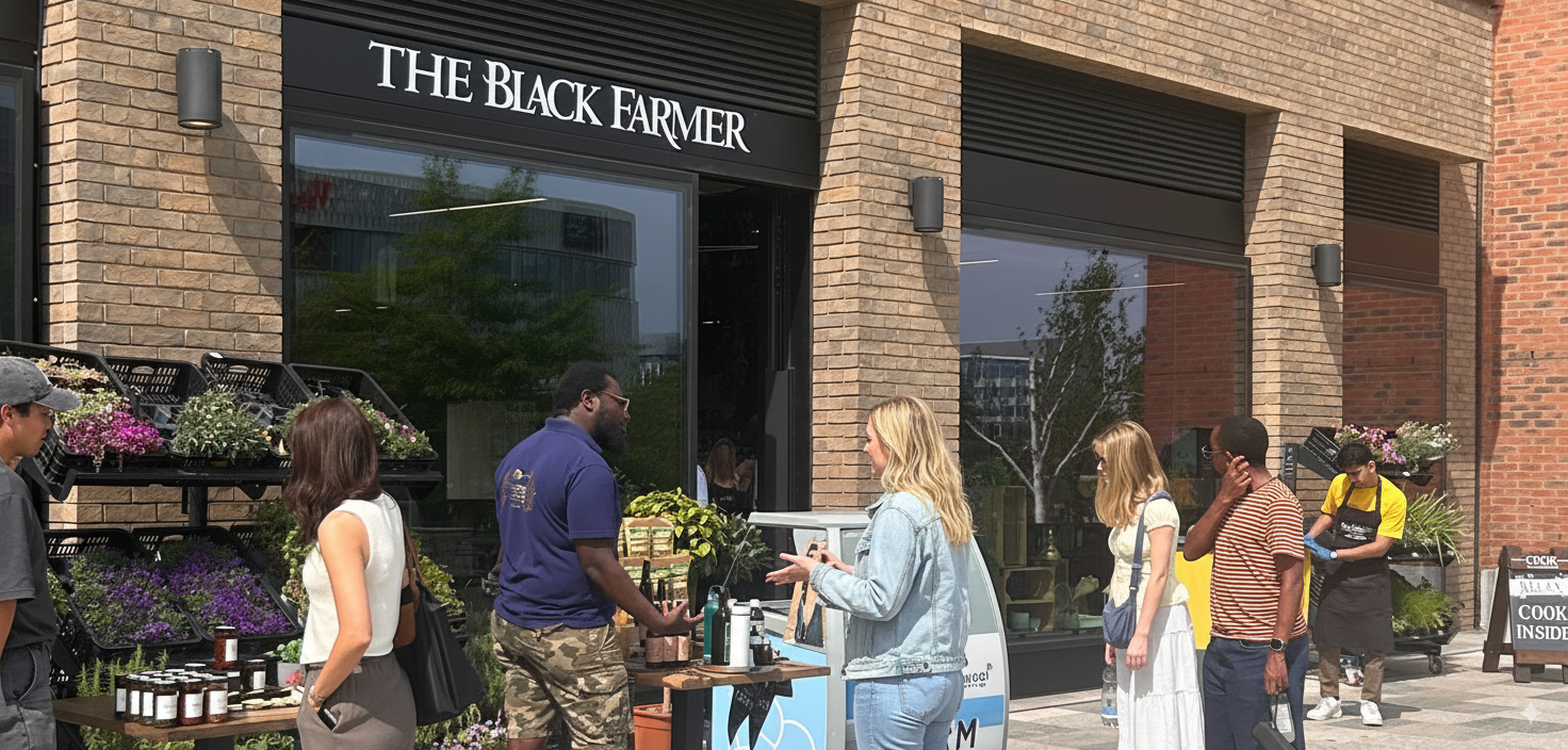 Welcome to The Black Farmer at White City – where tradition meets innovation in the heart of West London. More than just a shop, this is a place to take a breather, to relax among lush surroundings – and most importantly - to feel welcomed. Take away hot meals, salads, sandwiches and snacks, plus drinks that range from coffees to cocktails. Or stay and enjoy them in-store or on our outdoor terrace.